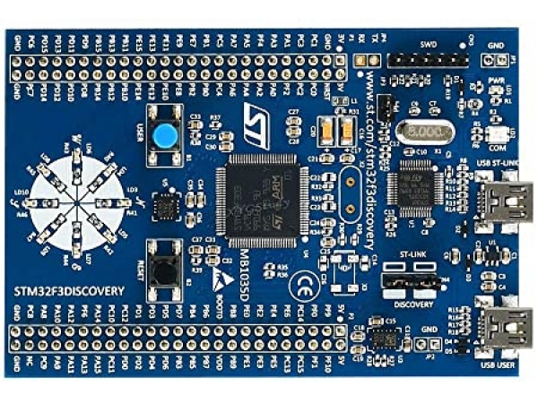 STM32F303VCT6 microcontroller featuring 256 KB Flash, 48 KB RAM in an LQFP100 package On-board ST-LINK/V2 with selection mode switch to use the kit as a standalone ST-LINK/V2 (with SWD connector for programming and debugging)